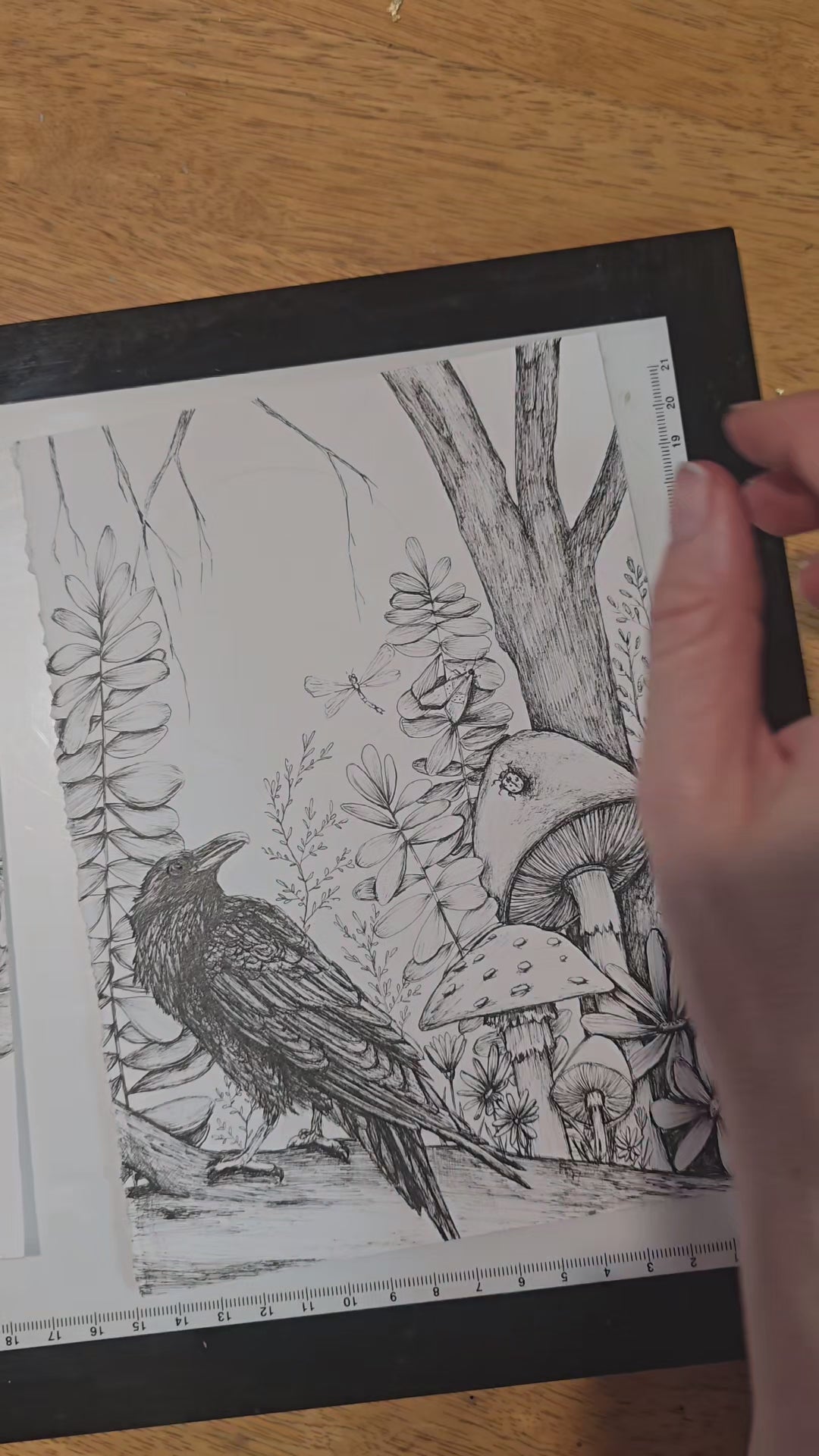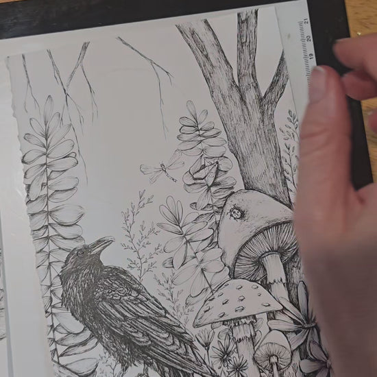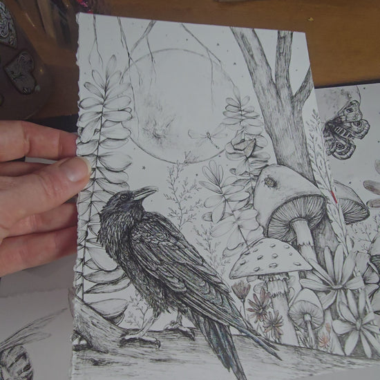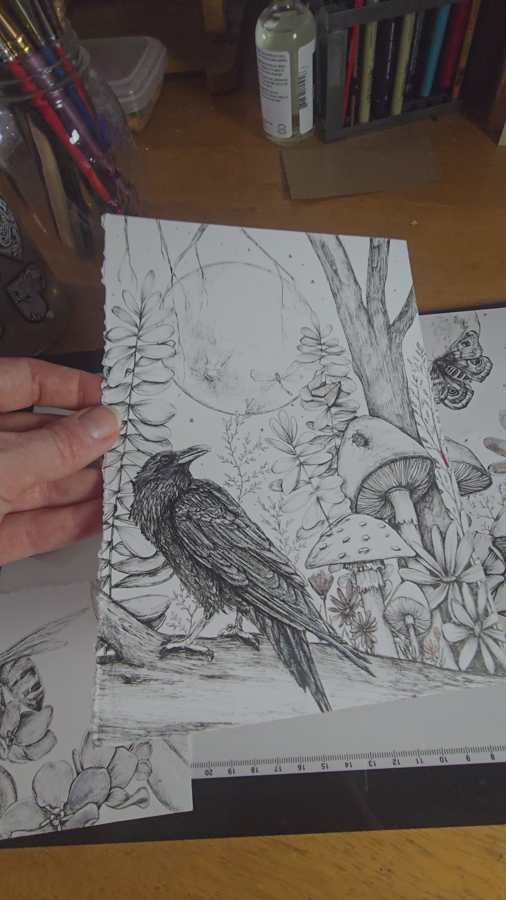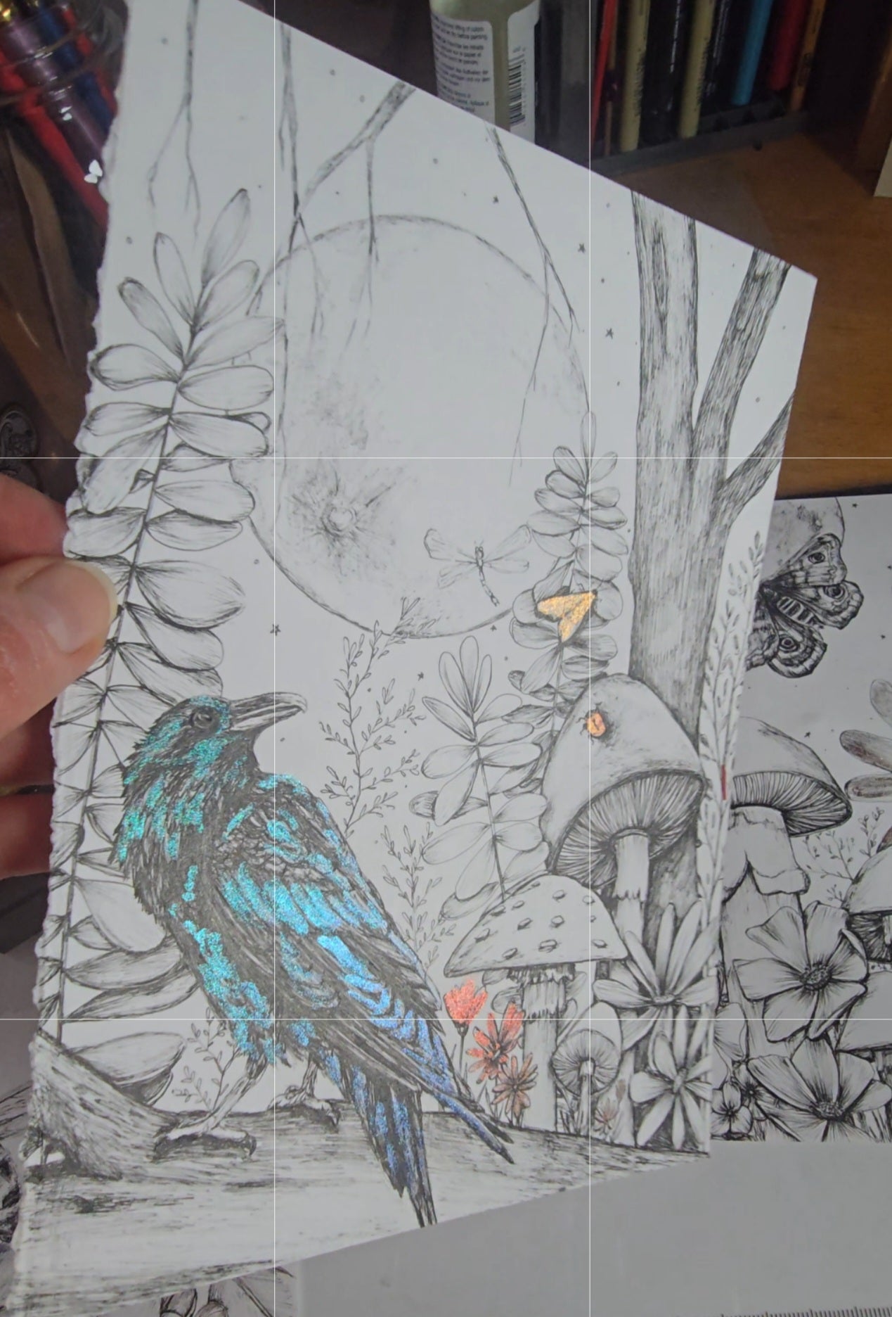 Beneath the watchful eye of the full moon, the forest becomes a sanctuary of whispers and wonder. I created this piece to honour the quiet magic that lives in the liminal—the hush between day and night, the stillness where transformation begins. The crow, the dragonfly, the mushrooms—they are messengers of change, of cycles, of unseen truths. This drawing is my offering to the wild, to the feminine, to the mystery. It’s a reminder that even in darkness, there is beauty, and even in silence, there is story.